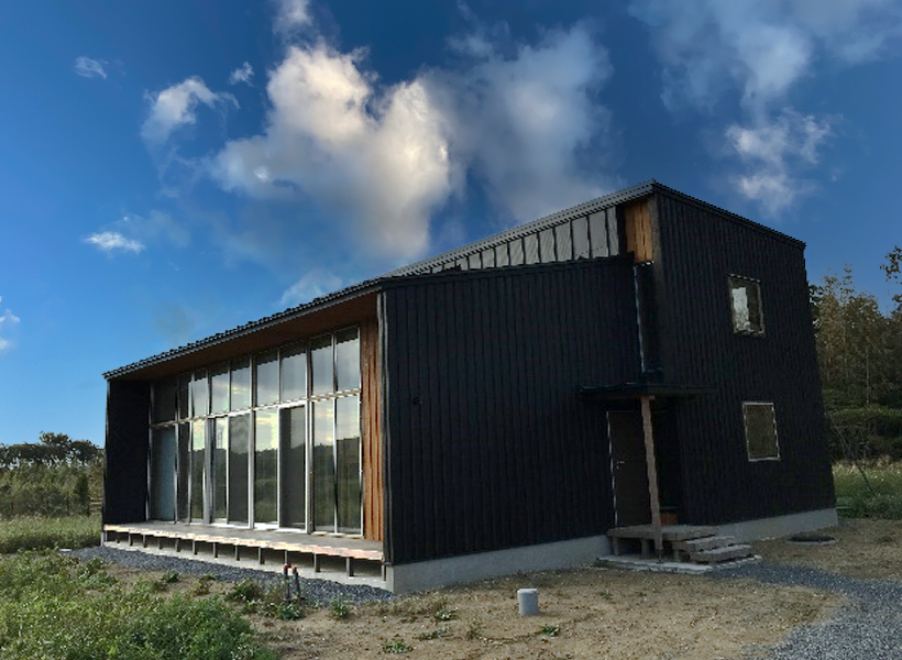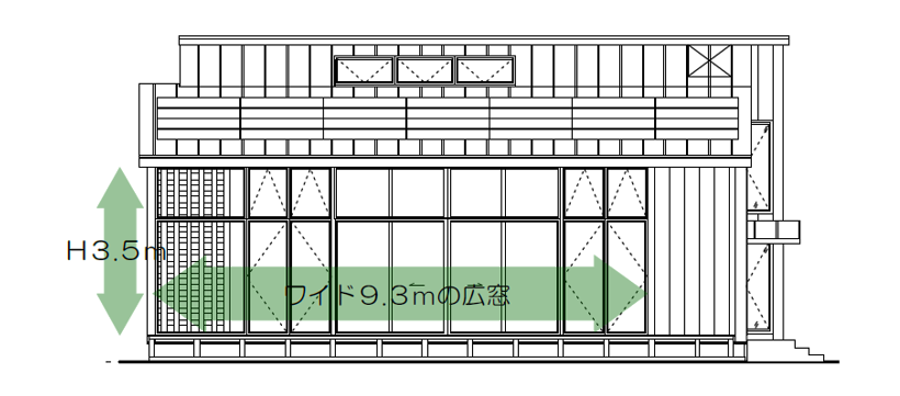 筆者は2011年の東日本大震災以来、復興住宅の提案から極力コストを抑えたZEH住宅を開発している。一般社団法人木創研を立ち上げ12棟目となるが、最大の特徴は、幅広の大開口部を設けながら、高い断熱性能を備えることだ。このスマートoff-grid住宅では、幅が9.3m,高さ3.5mの大開口部を設けながらUa値0.42W/㎡k(*Ua値:断熱性能を表す値)というHEAT20G2(*真冬に室内温度が13℃を下回らない温度)グレードの高い断熱性能を持つ。そのために欠かせないのが、大開口部に用いる「クワトロサッシ」で世界最高性能のU値0.51(*U値:熱の通りやすさを表す数値)を記録した製品である。さらに2層分のサロンの周りにはパッシブ型のローコストな省エネの工夫が満載で、床下にも冷暖房負荷を下げるための熱交換換気と床下空調方式を採用している。
