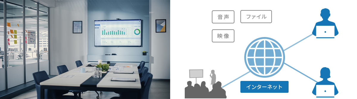 業務の効率化・合理化や的確かつ迅速な意思決定をするためのソリューションとして、TV会議・WEB会議システムの導入から、具体的な運用方法、さらに運用保守サービスまでの一連の業務をワンストップで行います。
