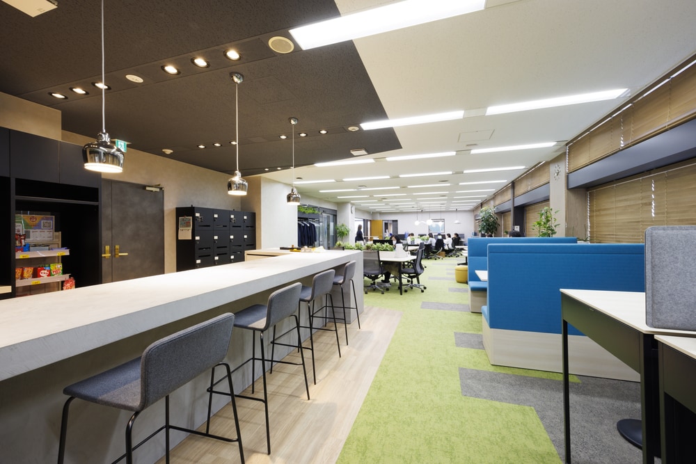 「フリーアドレス化にして、スタッフ同士のコミュニケーションが活性化したのは事実です。そして、お昼ごろになるとバーカウンターに集まり、賑やかなランチタイムが始まります(笑)。以前は各々の席が多かったので非常に良い事であると実感しています。フリーアドレスにしても『結局はいつもの席に座ってしまう』という弊害を避けるために『昨日と同じ席には座らない』というルールも設けました。席の種類についても、センターテーブル、ベンチ席、ソファー席と様々な種類を設置して、できるだけ飽きさせない工夫をしています。その他、集中して作業をしたい時のために『サイレントスペース』という私語や通話禁止の執務室を作り、繁忙期はそこで作業に取り組むスタッフも多いように思います。」(永井様)